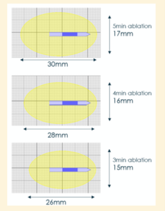 Kluczowe znaczenie ma fakt, że zasięg oddziaływania energii jest dokładnie przewidywalny, co pozwala na bardzo precyzyjne zaplanowanie zabiegu. Wielkość strefy ablacji jest uzależniona od czasu trwania ablacji.
